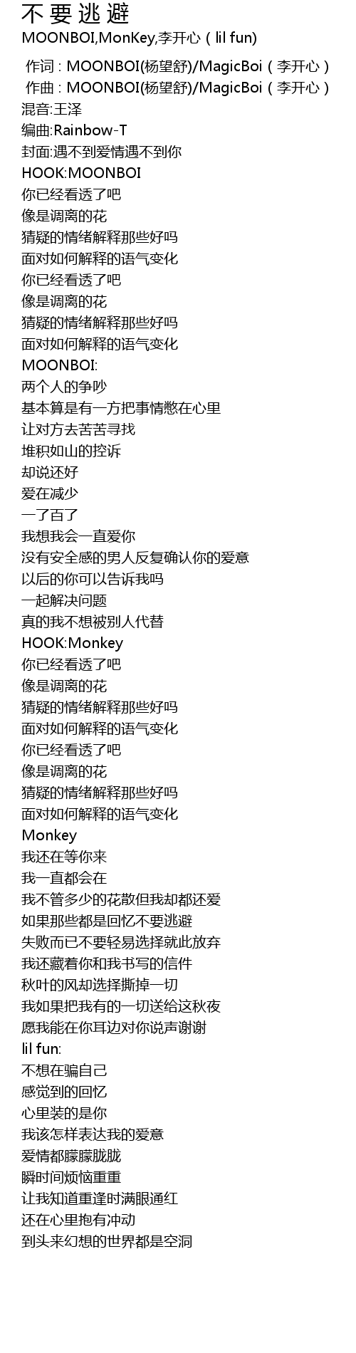 | [00:00.000] | 作词 : MOONBOI(杨望舒)/MagicBoi(李开心) |