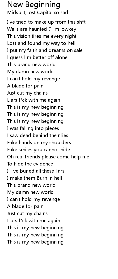 | [01:26.38] | This is my new beginning |
