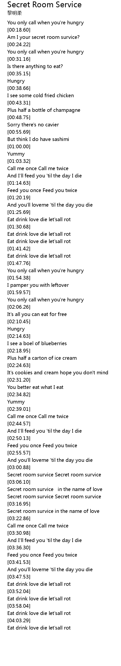 | [03:17.67] | Secret room survice in the name of love |
