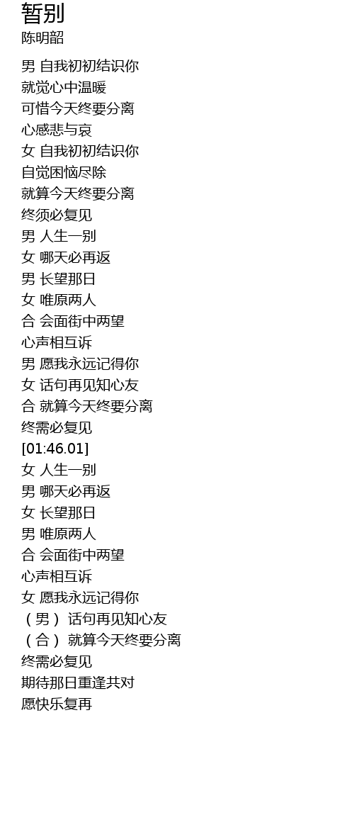 | [01:35.03] | 合 就算今天终要分离 |