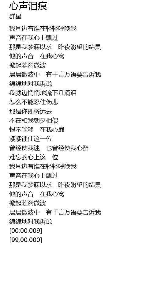 | [02:00.01] | ceng jing shi wo mi ye zeng jing shi wo xin zui |