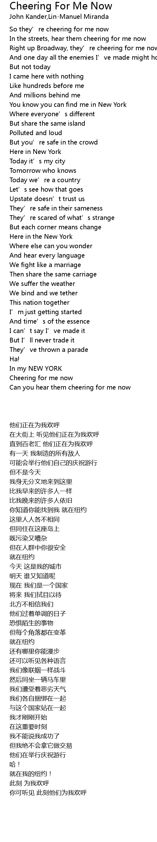 | [00:06] | In the streets, hear them cheering for me now |