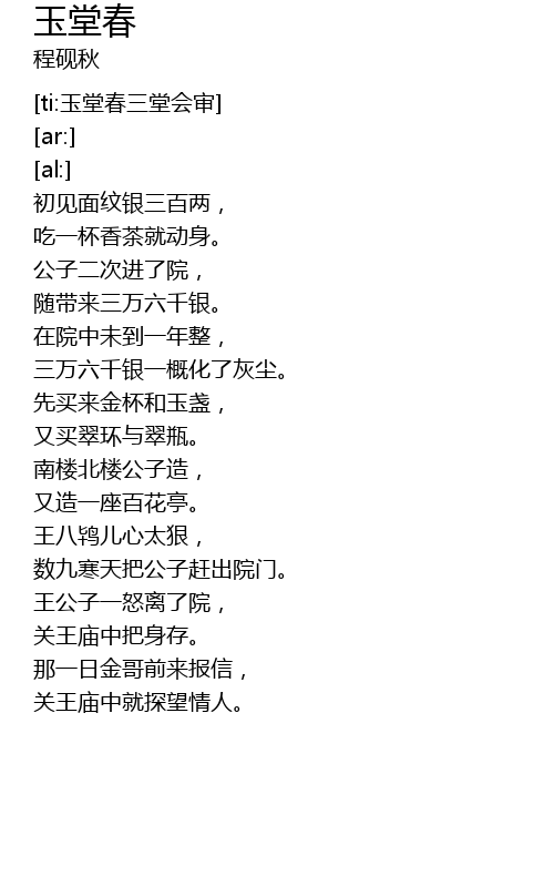 | [ti:玉堂春三堂会审] | |