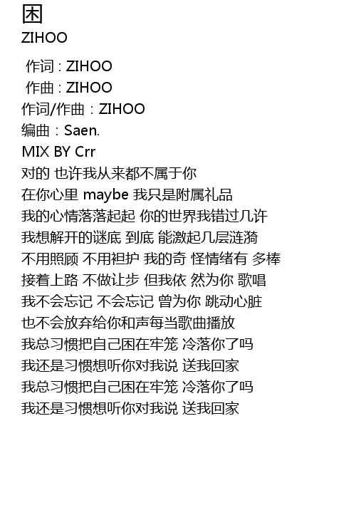 | [00:21.188] | 作词/作曲:ZIHOO |