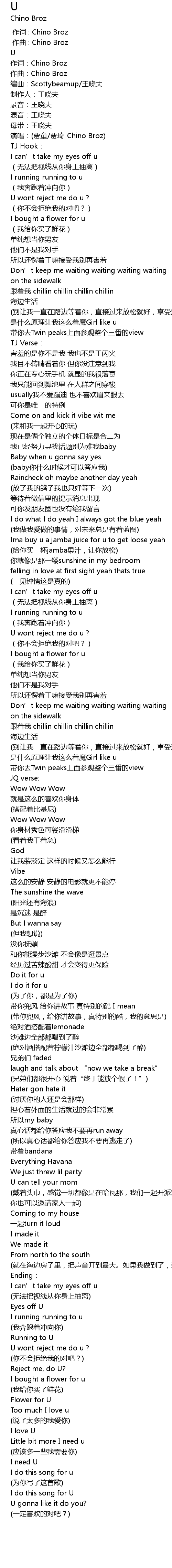 | [00:09.05] | 演唱:(贾童/贾琦-Chino Broz) |