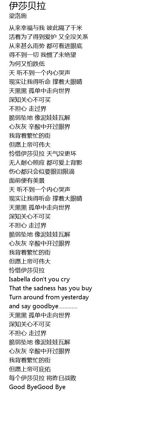 | [01:31.54] | 怜惜伊莎贝拉 天气没更坏 |