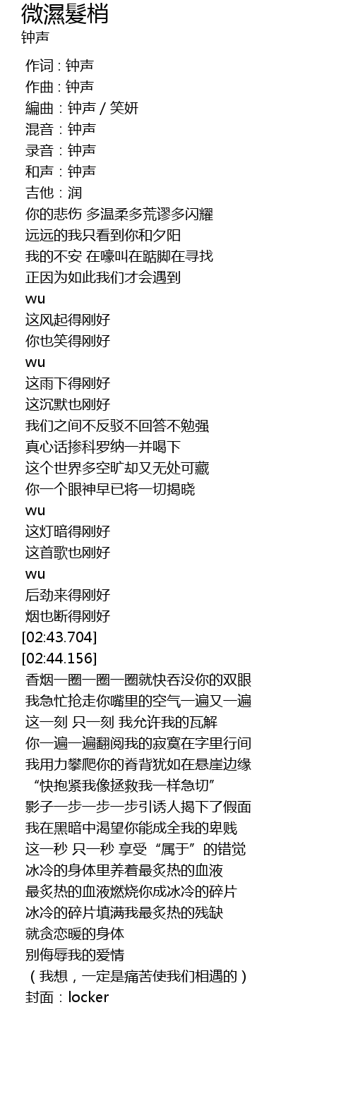 | [02:46.060] | 香烟一圈一圈一圈就快吞没你的双眼 |