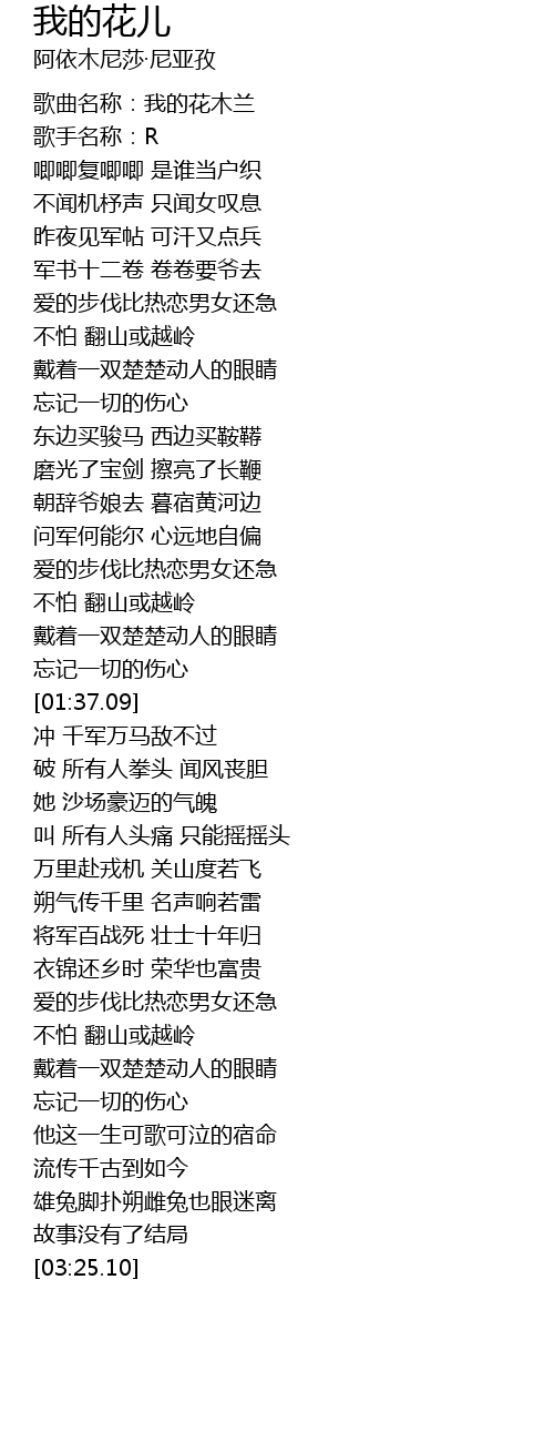 | [00:02.37] | 歌曲名称:我的花木兰 |