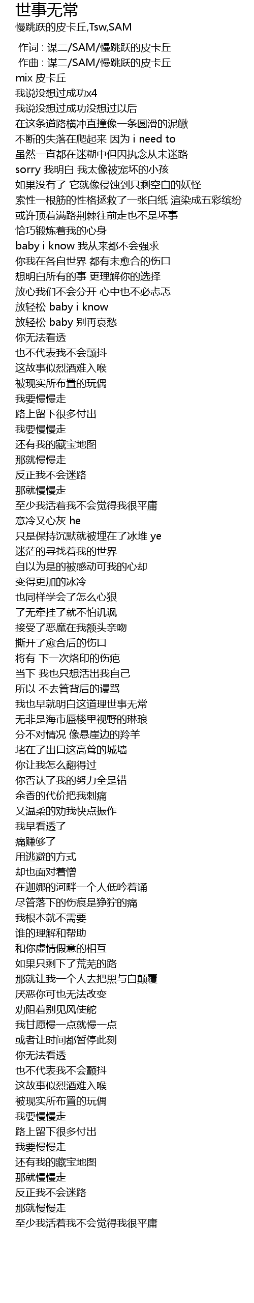 | [00:00.000] | zuò qǔ : móu èr SAM màn tiào yuè de pí kǎ qiū |