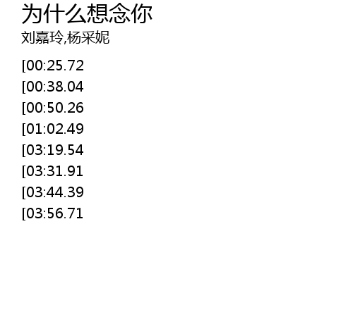 | [04:34.39][03:44.39][01:39.69] | 为什么想念你 我不断地寻寻觅觅 |
