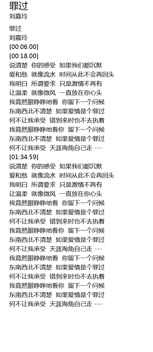 | [00:00.00] | 罪过 |