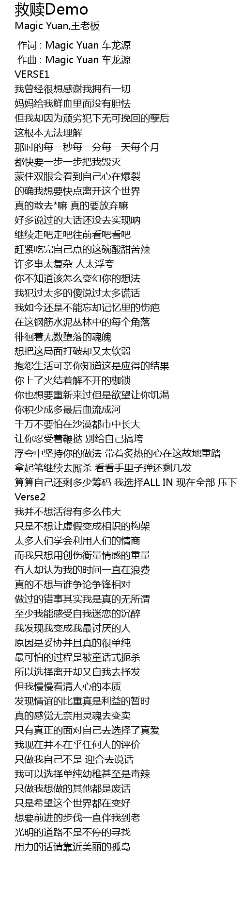 | [00:00.000] | 作词 : Magic Yuan 车龙源 |