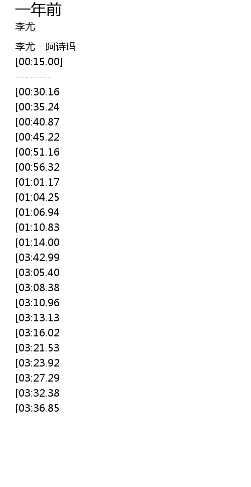 | [00:05.00] | 李尤 - 阿诗玛 |