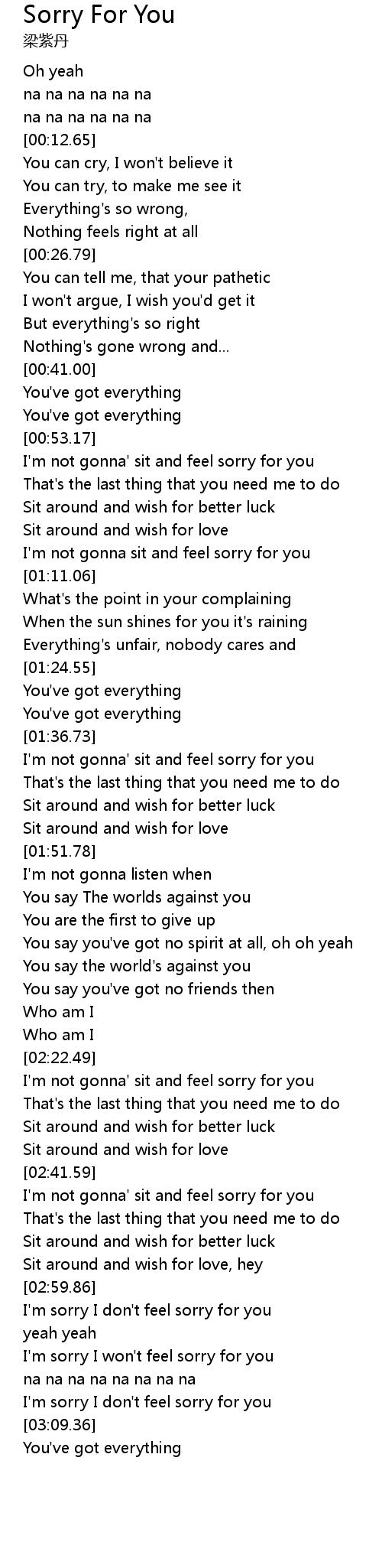 | [02:59.89] | I'm sorry I don't feel sorry for you |