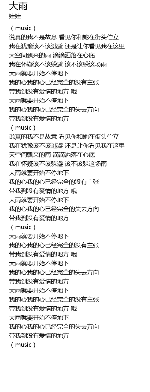| [02:50.200] | dà yǔ jiù yào kāi shǐ bù tíng dì xià |