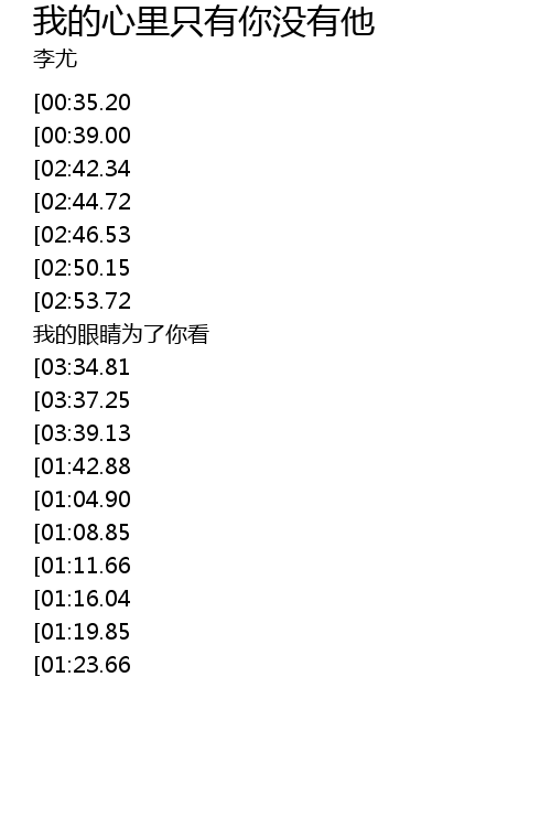 | [02:33.99][00:35.20] | 我的心里只有你没有他 |