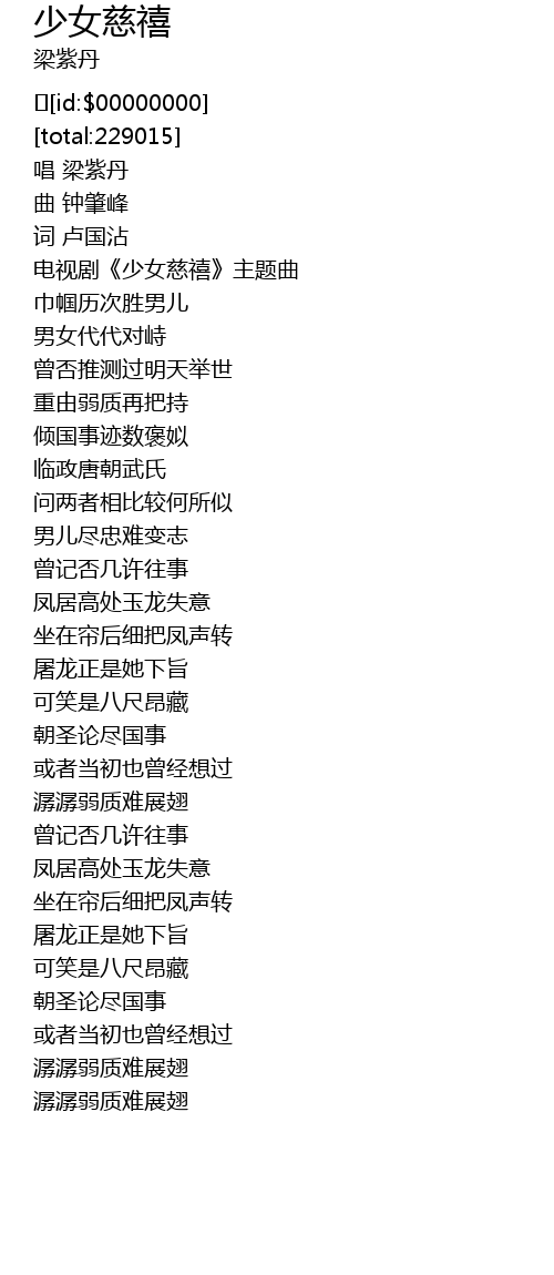 | [00:15.850] | 电视剧《少女慈禧》主题曲 |