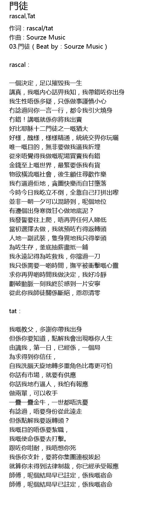 | 師傅,呢個結局早已註定,係我嘅宿命 | |
