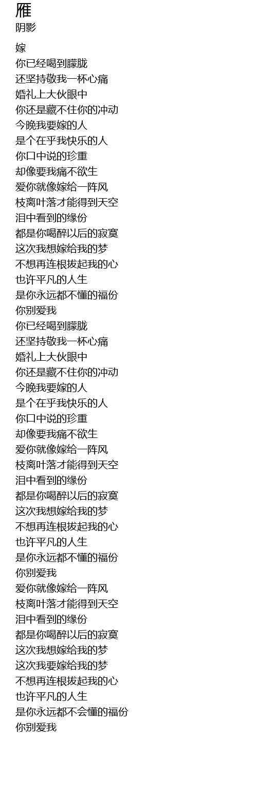 | [00:00.00] | 嫁 |