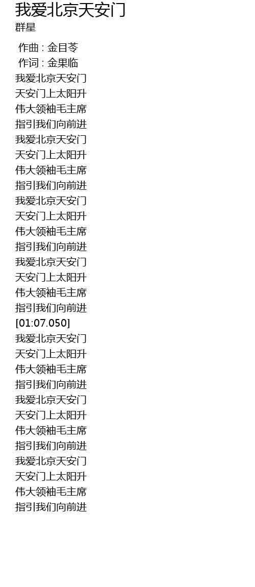 | [01:32.250] | tiān ān mén shàng tài yáng shēng |