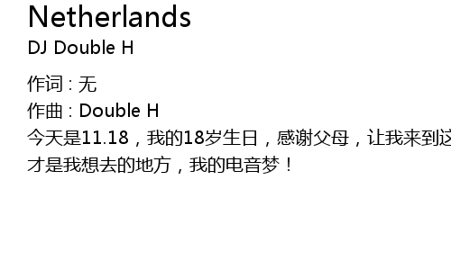 | 今天是11.18,我的18岁生日,感谢父母,让我来到这个世界,已经十八年了,荷兰 才是我想去的地方,我的电音梦! |