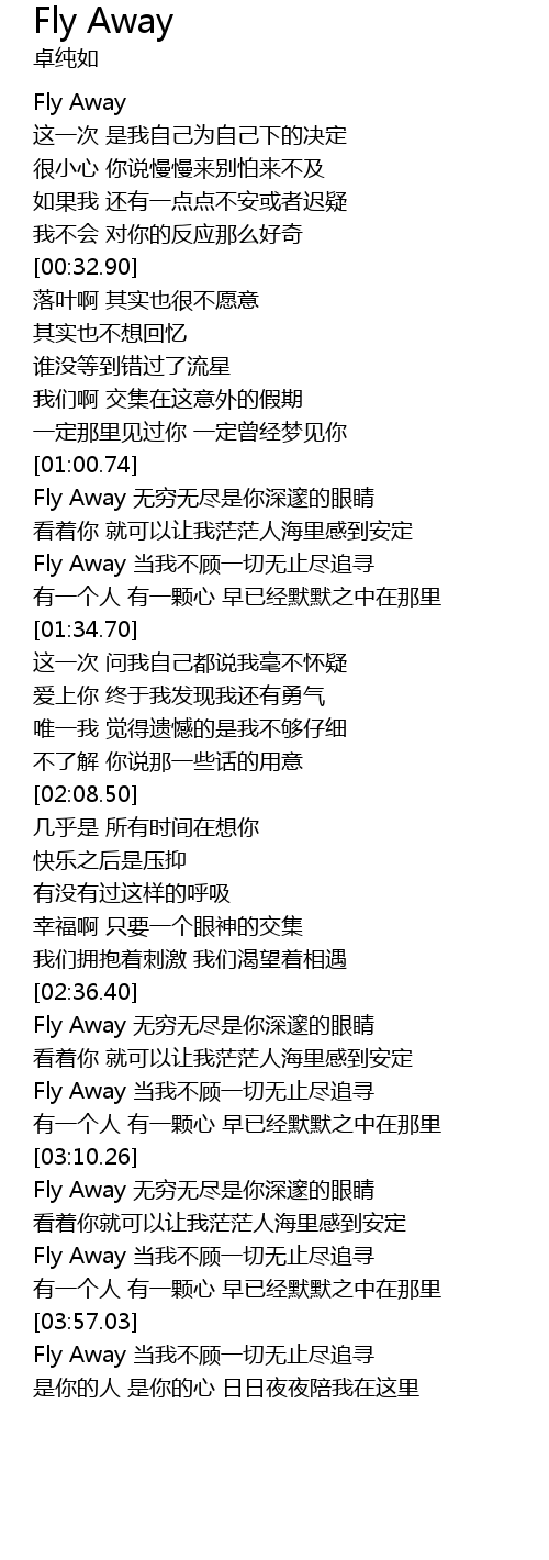 | [02:38.72] | Fly Away 无穷无尽是你深邃的眼睛 |