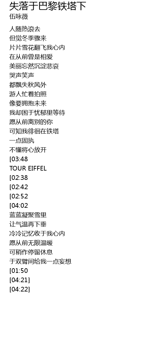 | [04:09][04:02][03:55][02:56][01:43] | 已失落于巴黎铁塔下 |