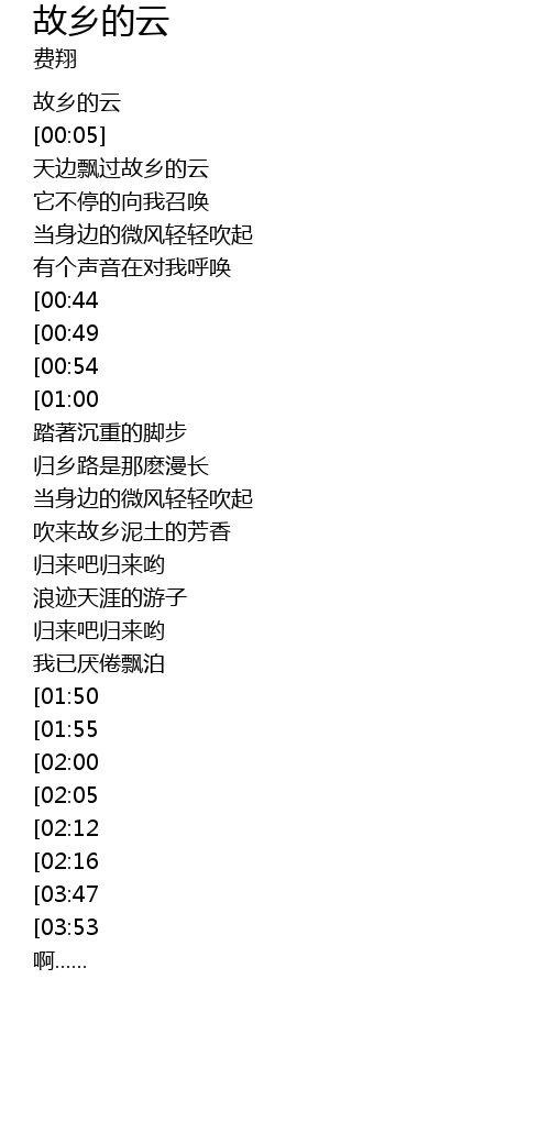 | [03:58][03:47][02:22] | 那故乡的风和故乡的云 |