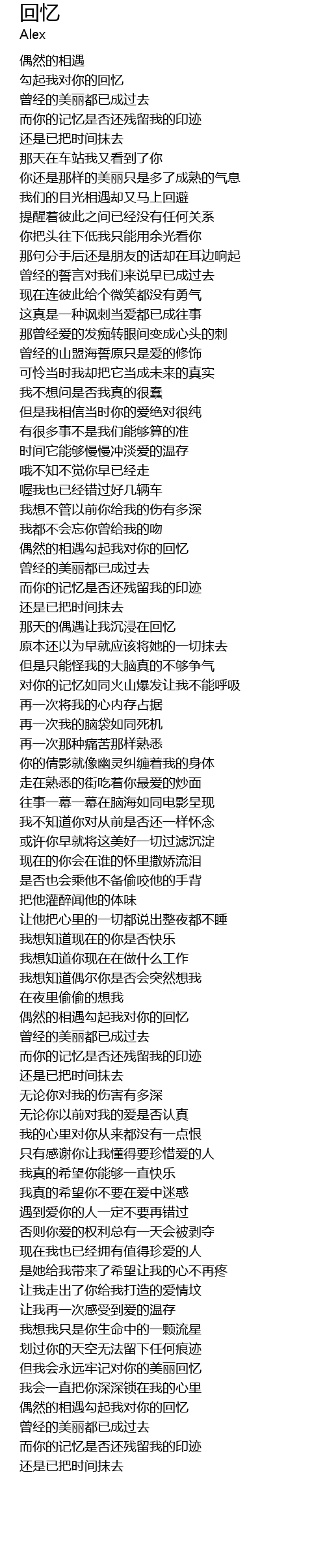 | [01:41.933] | 偶然的相遇勾起我对你的回忆 |