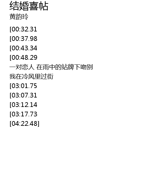 | [02:17.51][00:48.29] | 原来是 早晨接到恋人的喜帖 |