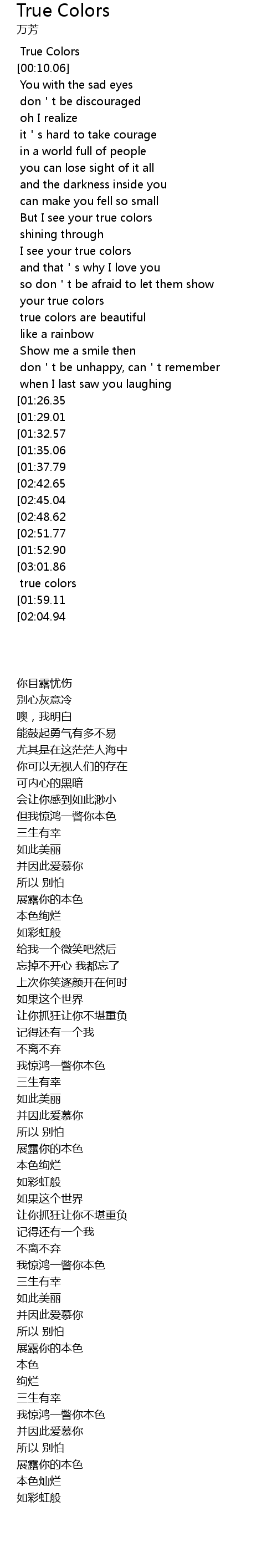 | [03:24.22][01:59.11] | true colors are beautiful |