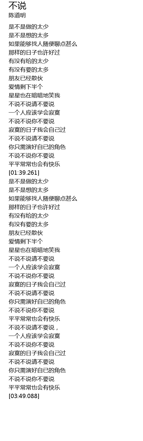 | [03:25.349] | bù shuō bù shuō qǐng bú yào shuō |