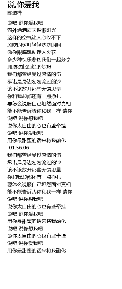 [02:55.87] shuō ba shuō nǐ ài wǒ ba