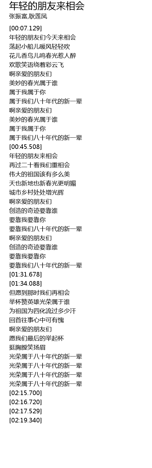 | [00:48.618] | 年轻的朋友来相会 |