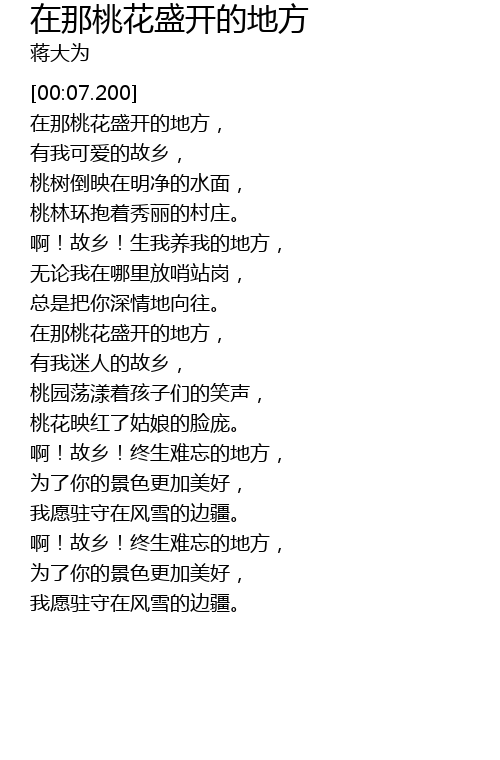 | [00:16.440] | zai na tao hua sheng kai de di fang, |