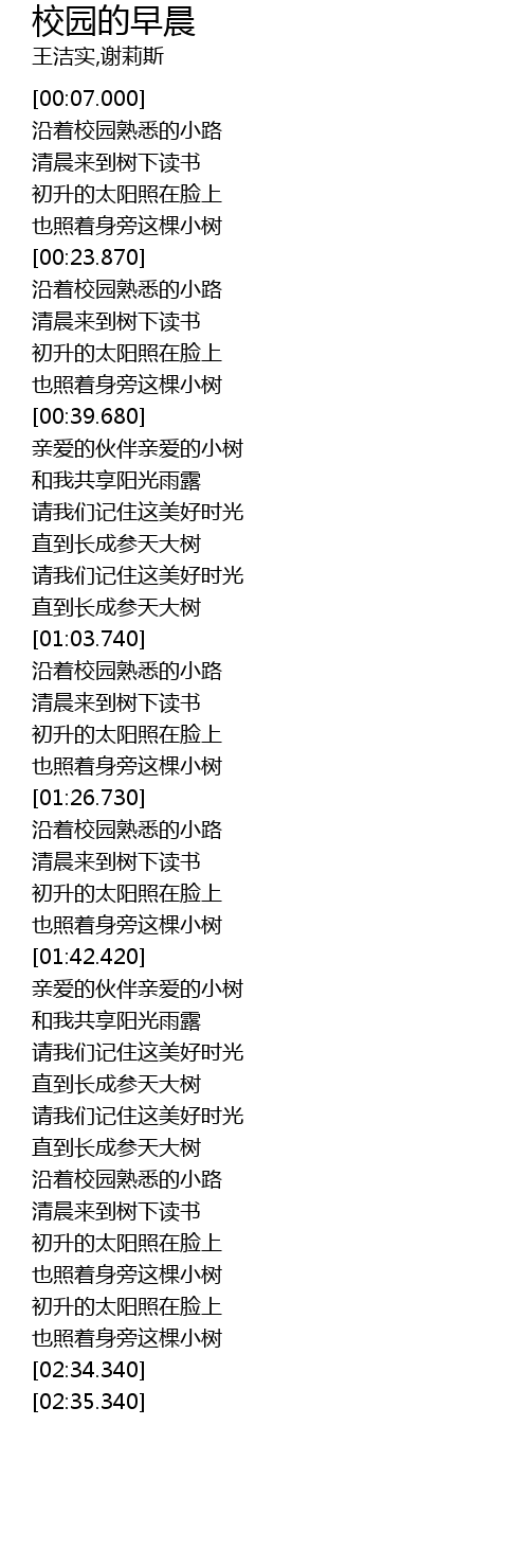 | [02:06.280] | 沿着校园熟悉的小路 |