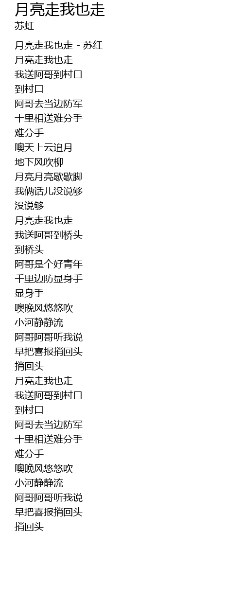 | [00:00.500] | 月亮走我也走 - 苏红 |
