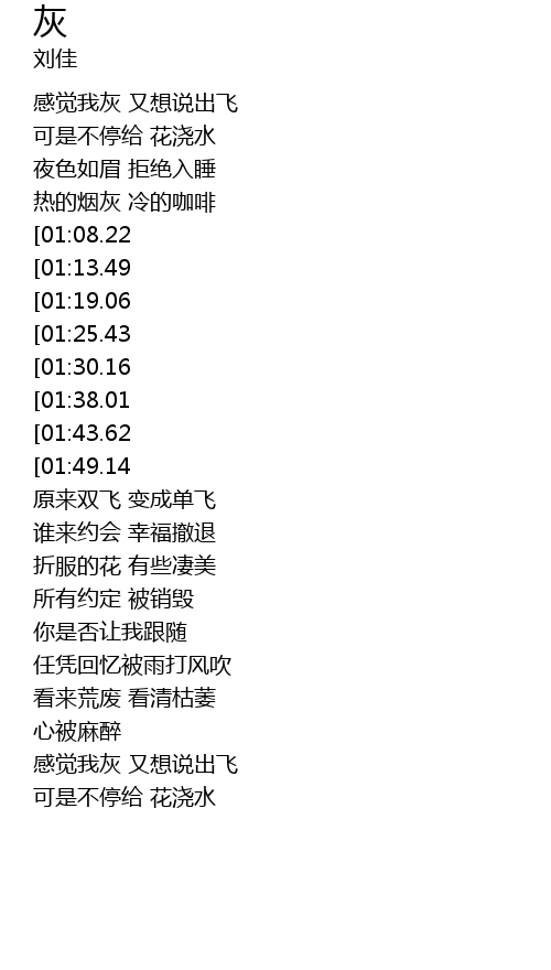 | [00:57.95] | 热的烟灰 冷的咖啡 |