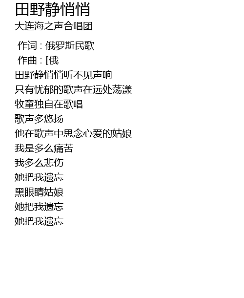 | [00:00.000] | 作词 : 俄罗斯民歌 |
