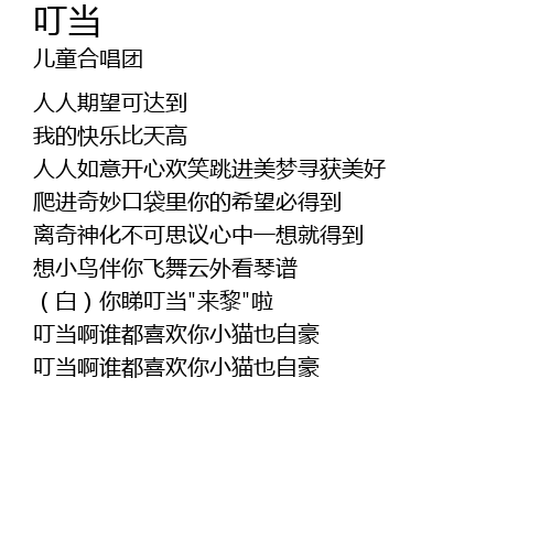 | [00:43.420] | 叮当啊谁都喜欢你小猫也自豪 |