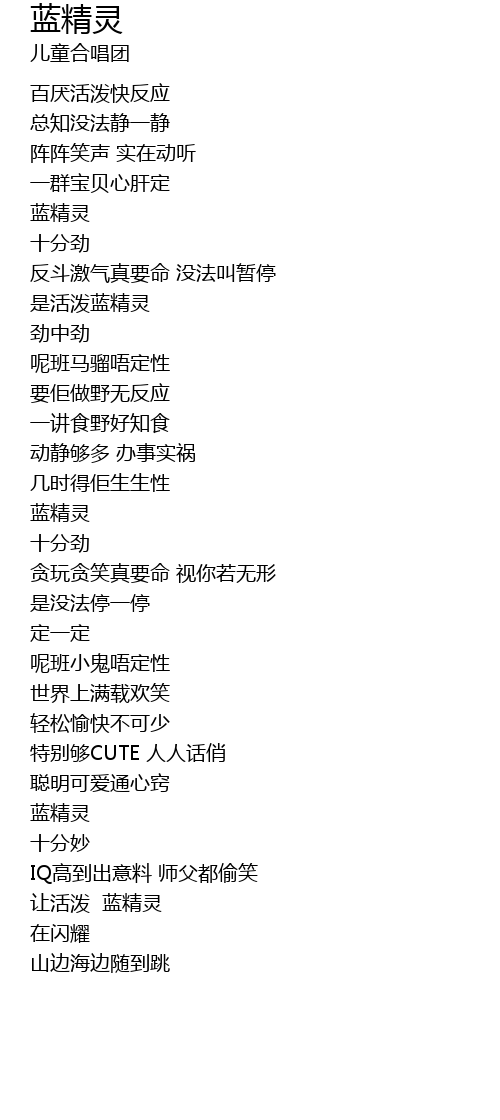 | [00:36.840] | 是活泼蓝精灵 |