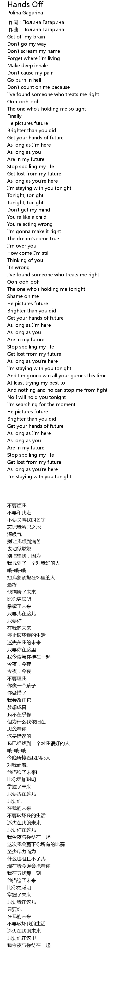 | [00:01.000] | 作曲 : Полина Гагарина |