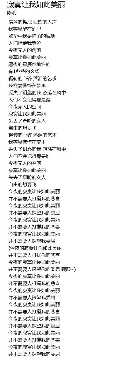 | [01:44.36] | jì mò ràng wǒ rú cǐ měi lì |