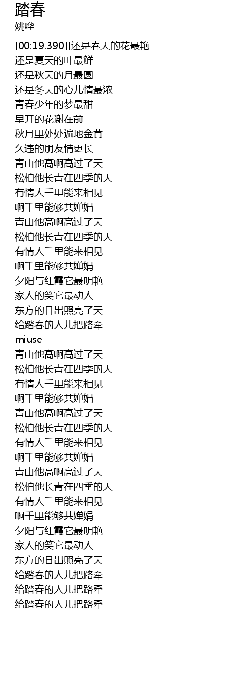 | [00:19.390]] | hai shi chun tian de hua zui yan |