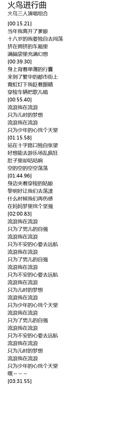 | [02:58.96] | 流浪我在流浪 |