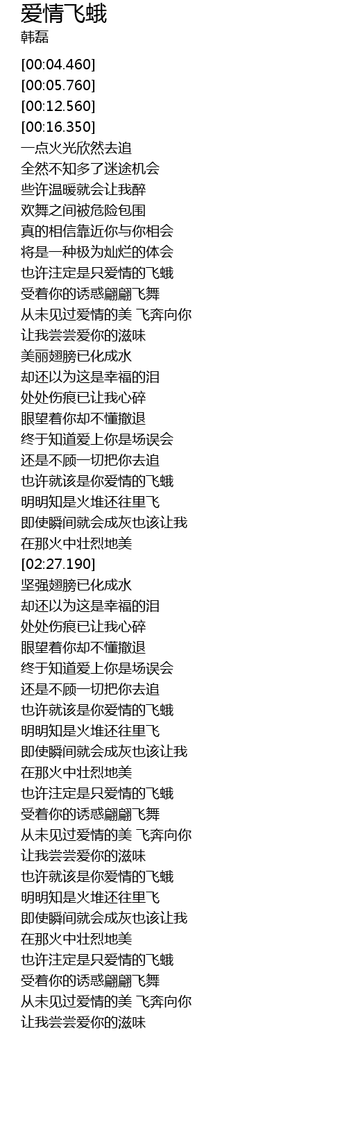 | [00:55.160] | 也许注定是只爱情的飞蛾 |