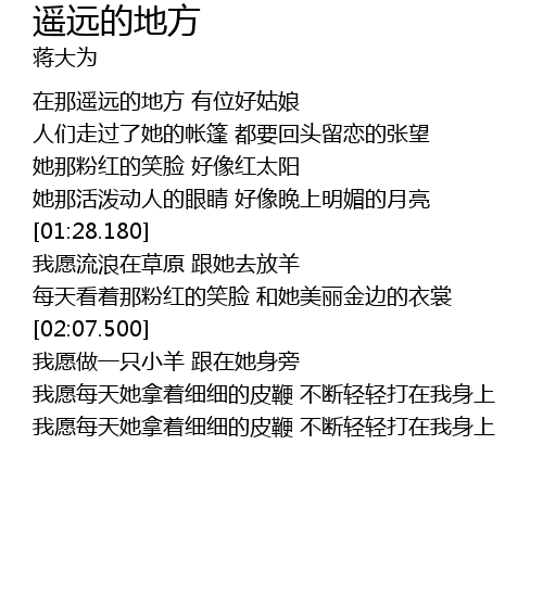 | [01:47.010] | 我愿流浪在草原 跟她去放羊 |