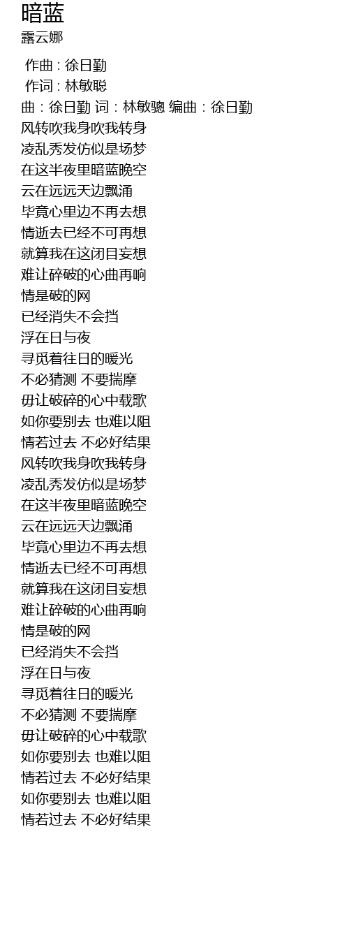 | [00:03.22] | 曲:徐日勤 词:林敏骢 编曲:徐日勤 |