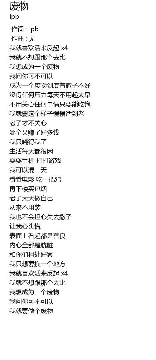 | [02:53.938] | 我就要做个废物 |