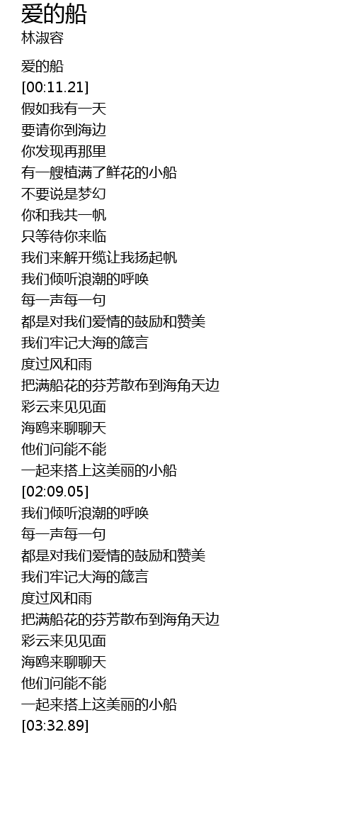 | [03:25.47] | 一起来搭上这美丽的小船 |